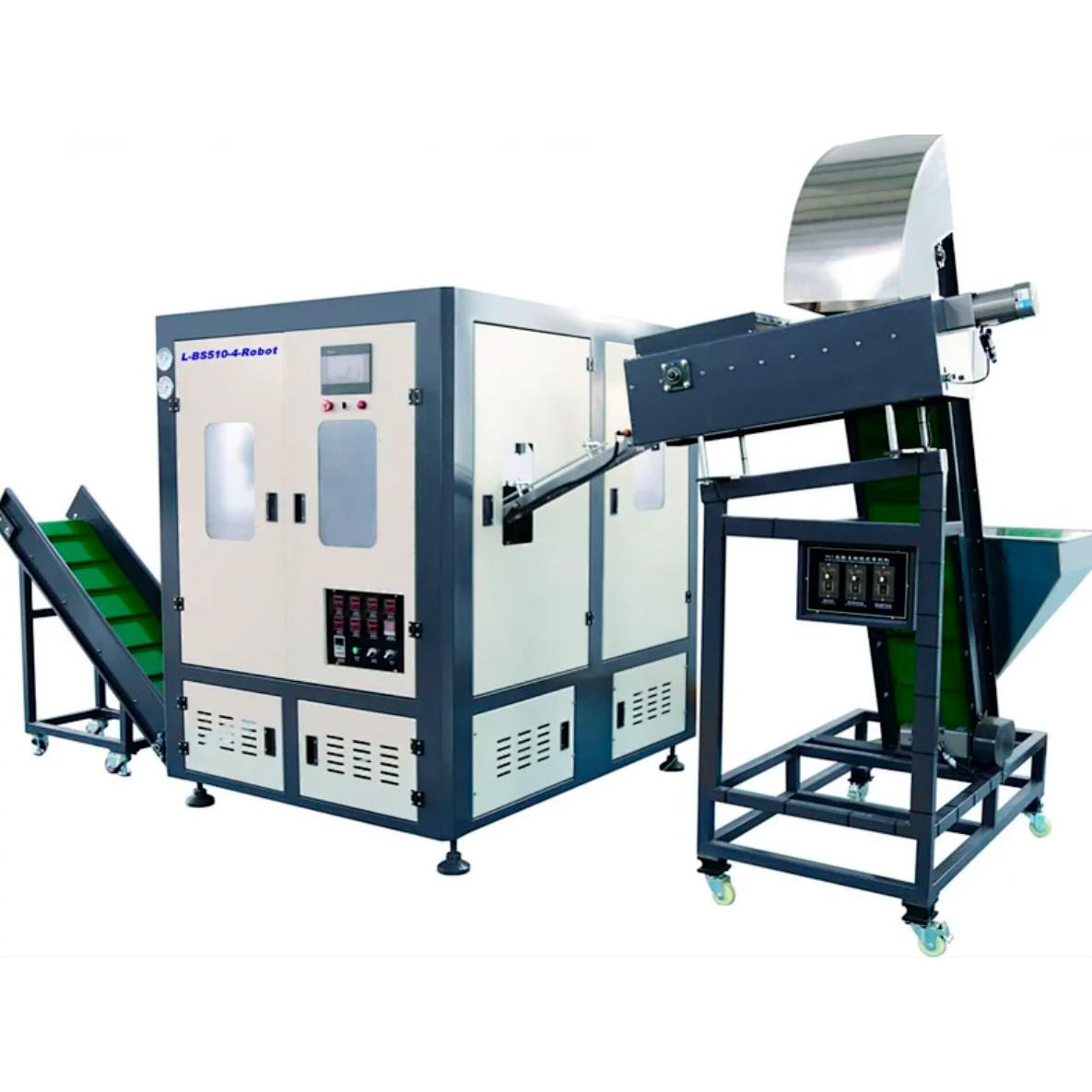A máquina automática de sopro de garrafas L-BS510-4-ROBOT é adequada para produzir garrafas PET de 100 ml a 1500 ml e é amplamente utilizada na fabricação de garrafas de água, suco, bebidas, cosméticos e pesticidas com alta produção e eficiência. É ideal para fábricas de alimentos e bebidas, bem como para plantas de manufatura em geral.